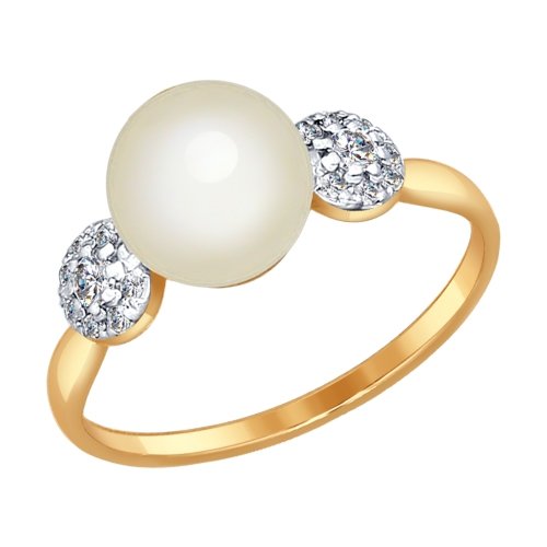 Кольцо из красного золота с жемчугом и фианитами