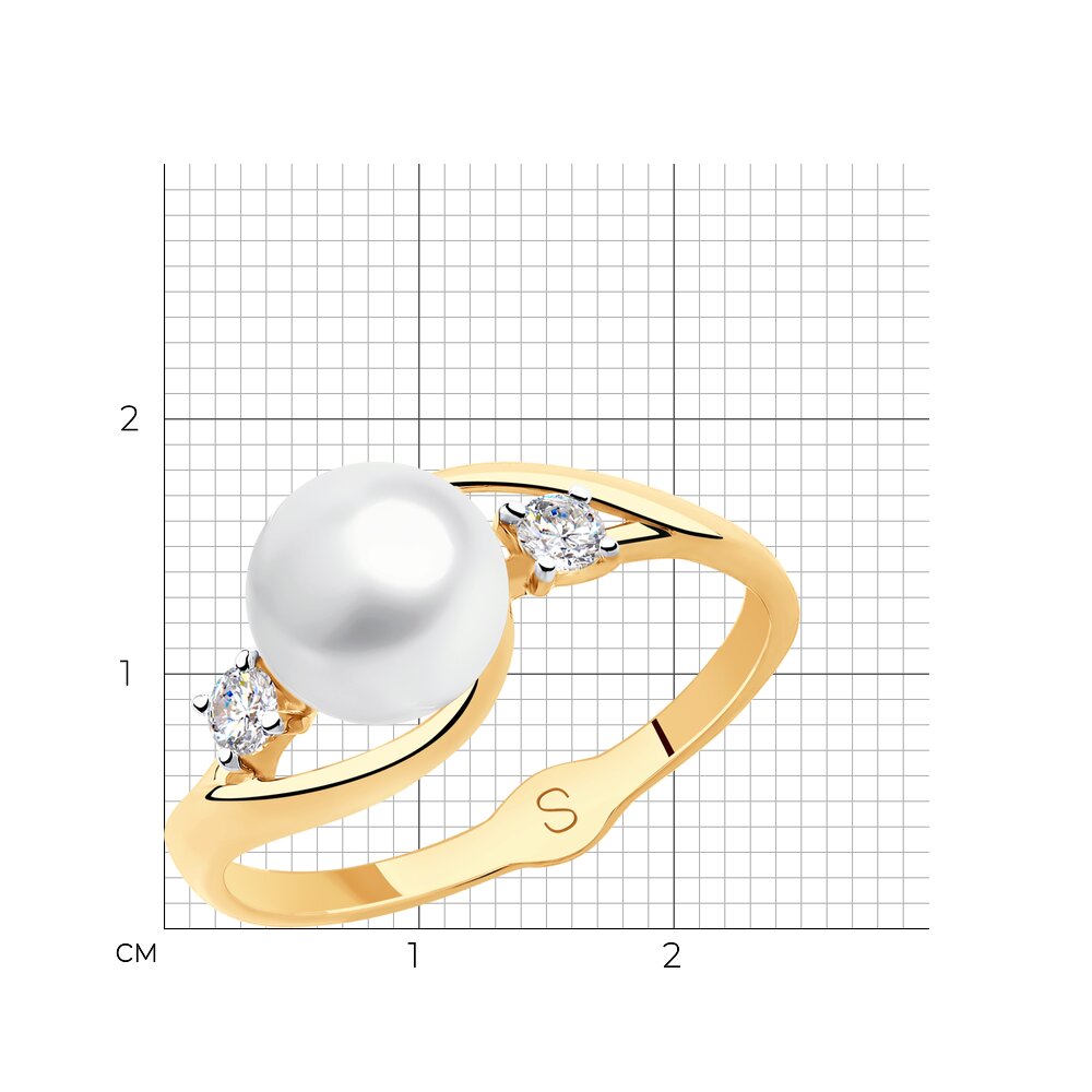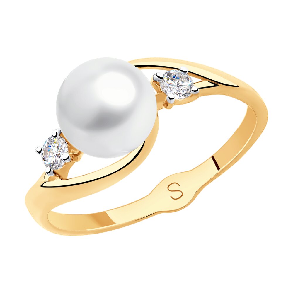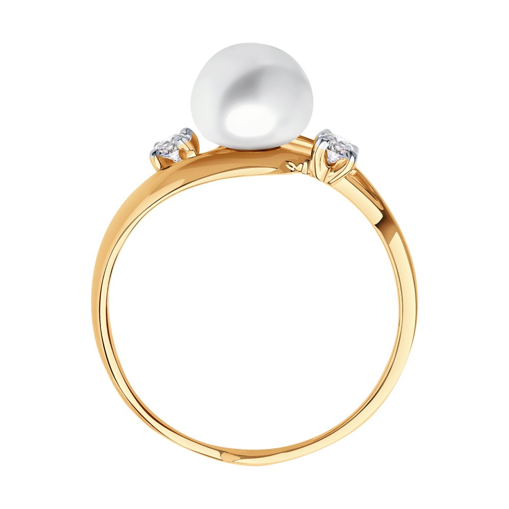 Кольцо из красного золота с жемчугом и фианитами