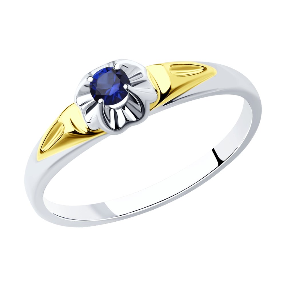 Кольцо из родированного серебра с жёлтым золочением, выполнено в очаровательном дизайне и украшено сапфировым корундом. Утонченное украшение с контрастным блеском серебра, выгодно подчеркивающим яркое сияние корунда, станет выразительным акцентом повседневного и вечернего образа. Приобретайте ювелирное украшение в подарок по выгодной цене в магазинах Мир Золота.