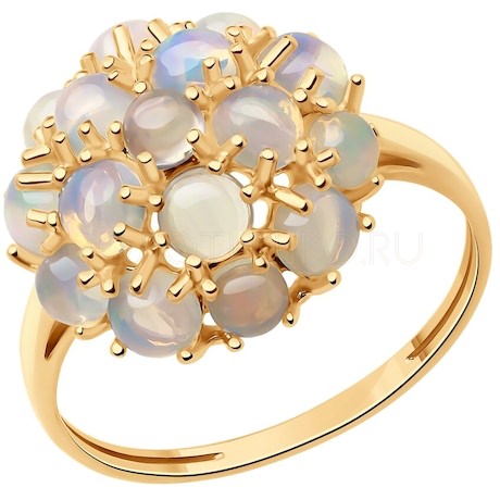 Кольцо из красного золота 585 пробы с эффектным декором из камней натурального опала покоряет своей красотой и дизайном. Нежное мягкое сияние ювелирных камней дополнено благородным блеском золота, кольцо привлекательно и нарядно смотрится, и станет прекрасным дополнением очаровательного женственного образа. Приобретайте ювелирное украшение в подарок по выгодным ценам в магазинах Мир Золота.