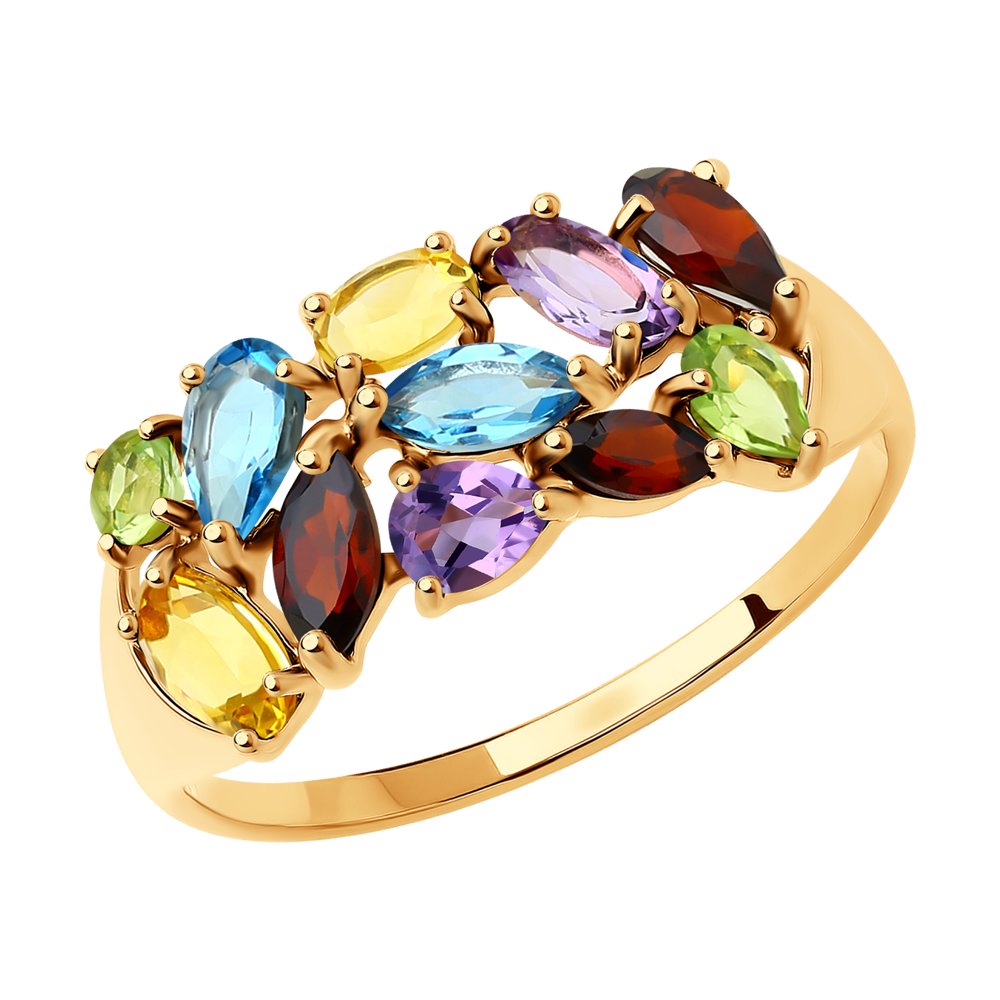 Превосходное кольцо из красного золота 585 пробы с миксом полудрагоценных камней покоряет с первого взгляда. Обворожительное сияние подобранной композиции разноцветных камней эффектно украсит привлекательный женственный образ, особенно красиво кольцо смотрится в комплекте с серьгами. Приобретайте украшение с ярким многообразием ювелирных камней по выгодной цене в магазинах Мир Золота.