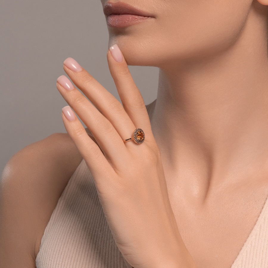 —Кольцо из красного золота с цитрином и фианитами