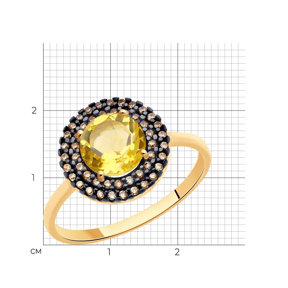 Кольцо из красного золота с цитрином и фианитами
