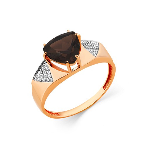 Кольцо стильного дизайна с раухтопазом и фианитами выполнено из красного золота 585 пробы. Выразительный раухтопаз необычной формы огранки выгодно подчеркнут декоративными вставками с искристыми фианитами. Стильное украшение с изумительным блеском ювелирных камней станет изюминкой классического или современного образа. Приобретайте украшение по выгодным ценам в магазинах Мир Золота.