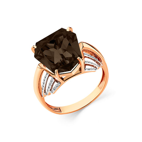 Превосходное кольцо из красного золота 585 пробы с эффектным раухтопазом и дорожками с прозрачными фианитами. Изысканный дизайн и загадочный раухтопаз необычной формы огранки обращают на себя внимание. Замечательное украшение подчеркнет шарм и очарование владелицы, и внесет яркий акцент в женский образ. Приобретайте кольцо по выгодным ценам в магазинах Мир Золота.