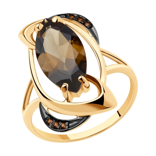 Роскошное кольцо с объемным декором из раухтопаза и цветных фианитов выполнено из красного золота 585 пробы. Необыкновенный дизайн приковывает внимание, изысканный блеск ювелирных камней дополняет эффектный образ украшения. Приобретайте ювелирное украшение для прекрасного подарка по выгодной цене в магазинах Мир Золота.