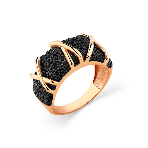 Великолепное кольцо из красного золота 585 пробы декорировано россыпью камней черной синтетической шпинели. Выразительный аксессуар наполнит женский образ ярким блеском, и придётся по вкусу любительницам крупных ювелирных украшений. Приобретайте ювелирное украшение для создания эффектного и неповторимого образа по выгодной цене в магазинах Мир Золота.