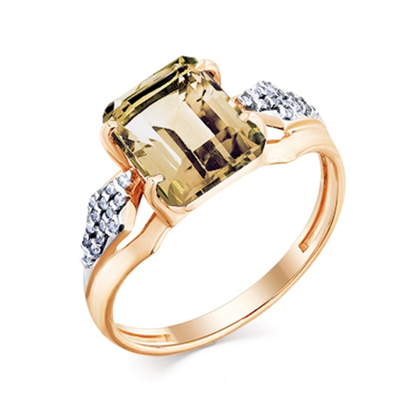 Кольцо современного дизайна, выполненное из красного золота 585 пробы, с синтетическим султанитом и фианитами выразительно смотрится на руке и комфортно в носке. Привлекательный аксессуар подчеркнет безупречный вкус владелицы, и станет любимым и универсальным украшением для любого образа. Приобретайте ювелирное кольцо по выгодной цене в магазинах Мир Золота.