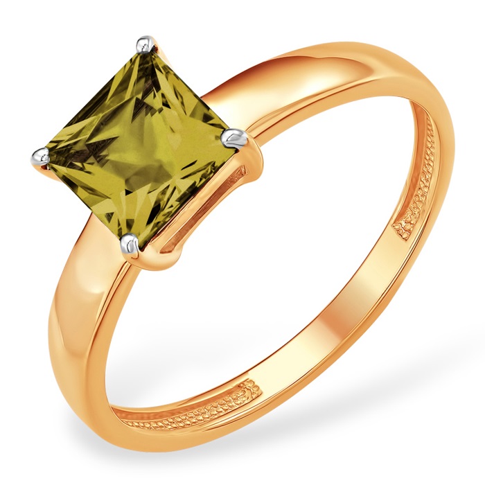 Утонченное кольцо из красного золота 585 пробы декорировано прекрасным султанитом квадратной формы огранки. Украшение с привлекательным блеском солирующего камня стильно и изящно смотрится на руке и станет очаровательным дополнением повседневного или вечернего образа. Приобретайте ювелирное кольцо выгодно в магазинах Мир Золота.
