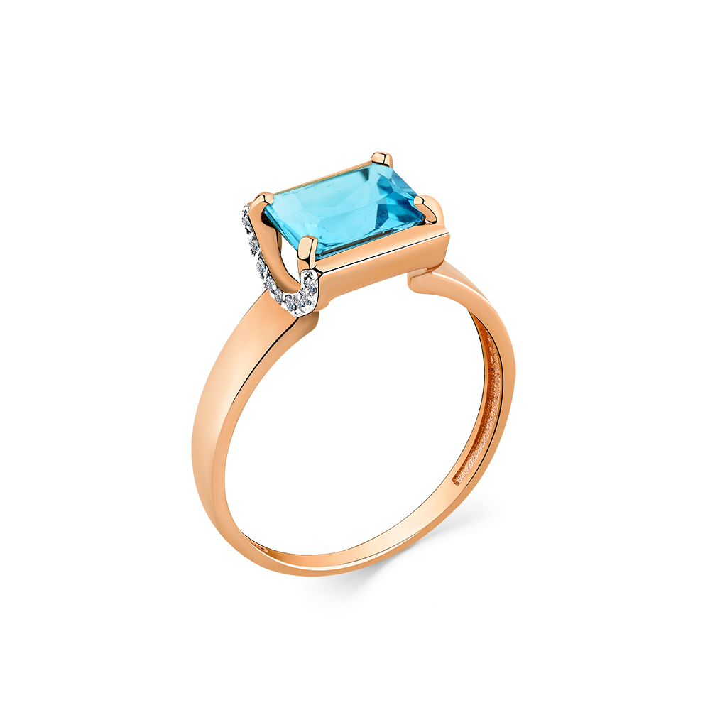 Стильное кольцо необычного дизайна с эффектным топазом и фигурными дорожками с кристальными фианитами выполнено из красного золота 585 пробы. Яркий топаз насыщенного, прозрачного синего оттенка покоряет своей удивительной красотой, и сделает женский образ более утонченным, элегантным и загадочным. Приобретайте актуальное украшение в подарок, выгодно в магазинах Мир Золота.
