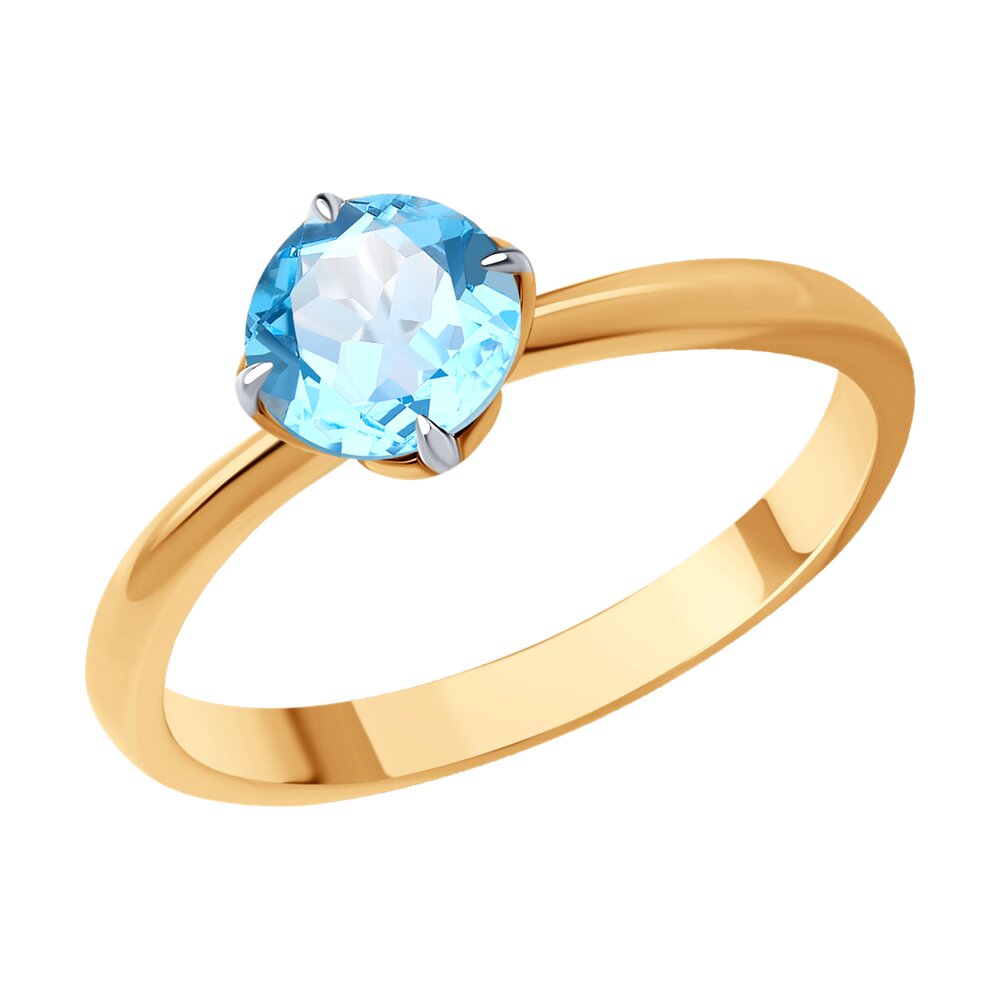 Классическое кольцо с голубым топазом выполнено в сдержанном дизайне из красного золота 585 пробы. Драгоценный металл идеально подчеркивает нежное сияние и красоту удивительного камня, элегантное украшение станет прекрасным дополнением повседневного или вечернего образа. Приобретайте ювелирное кольцо по выгодной цене в магазинах Мир Золота.