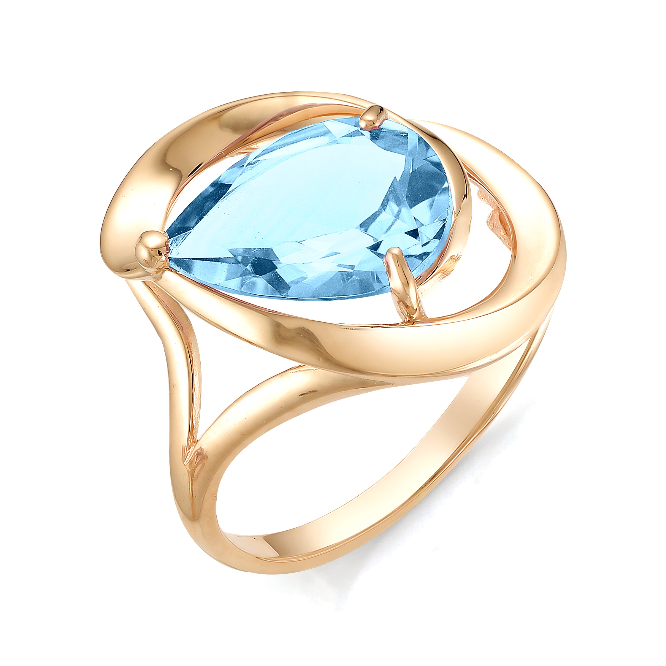 Женское кольцо с объемным декором с превосходным голубым топазом выполнено из красного золота 585 пробы. Очень женственное украшение с плавными линиями благородного металла и ярким насыщенным блеском топаза swiss не останется незамеченным, и станет выразительной деталью элегантного современного образа. Покупайте ювелирное украшение в подарок по выгодной цене в магазинах Мир Золота.