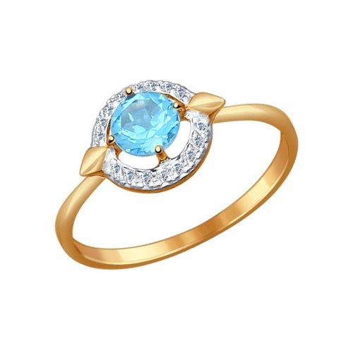 Утонченное кольцо с голубым топазом в окружении кристальных фианитов выполнено из красного золота 585 пробы. Украшение с привлекательным блеском ювелирных камней смотрится нежно и женственно, и будет универсальным дополнением повседневного образа и вечернего наряда. Приобретайте кольцо для себя или в подарок по выгодным ценам в магазинах Мир Золота.