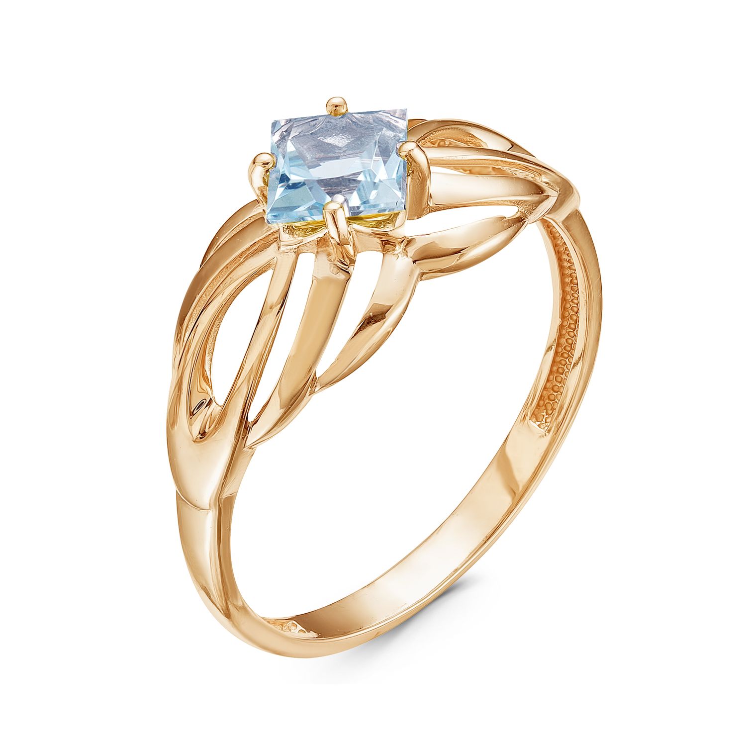 Привлекательное кольцо выполнено из красного золота 585 пробы с натуральным топазом. Украшение изящного дизайна дополнит женский образ особым очарованием и ярким акцентом голубого топаза, и станет любимым аксессуаром в коллекции владелицы. Приобретайте украшение для себя или в подарок по выгодным ценам в магазинах Мир Золота.