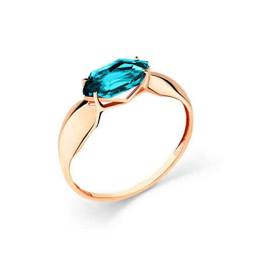 Привлекательное кольцо из красного золота декорировано яркой вставкой с топазом ситаллом swiss фантазийной формы огранки. Необычный лазурный топаз в форме шестигранника привлекает внимание, эффектная закрепка раскрывает насыщенное сияние топаза и подчеркивает его удивительную красоту. Приобретайте изысканное украшение по выгодным ценам в магазинах Мир Золота.