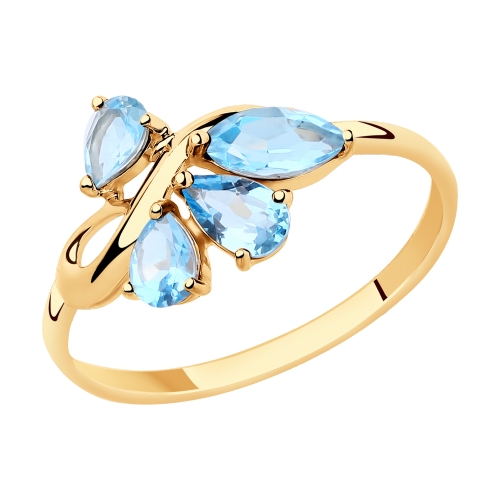 Очаровательное кольцо с голубыми топазами swiss утонченной формы огранки выполнено из красного золота 585 пробы. Насыщенный блеск полудрагоценных лазурных камней приковывает внимание, и не оставит женщину равнодушной. Дополните свой привлекательный образ ярким изысканным акцентом, приобретайте украшение с топазами выгодно в магазинах Мир Золота.
