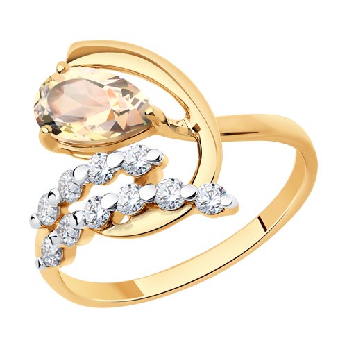 Кольцо из красного золота с топазом и фианитами
