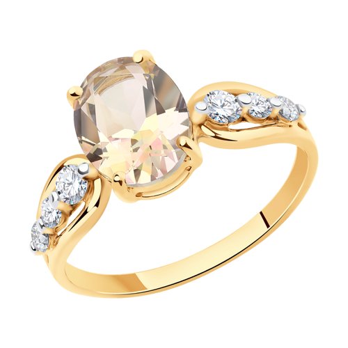 Кольцо из красного золота с топазом и фианитами