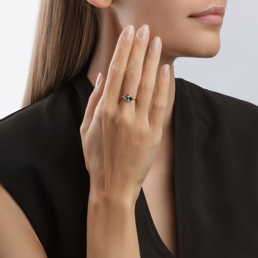 Изящное кольцо из красного золота 585 пробы с Лондон топазом и фианитами станет изюминкой женственного образа. В сочетании с тонкой шинкой насыщенный топаз, подчеркнутый искристыми фианитами, смотрится особенно выигрышно и красиво переливается на свету. Утонченное украшение добавит владелице шарма и очарования, и будет идеальным подарком. Покупайте кольцо по выгодной цене в магазинах Мир Золота.