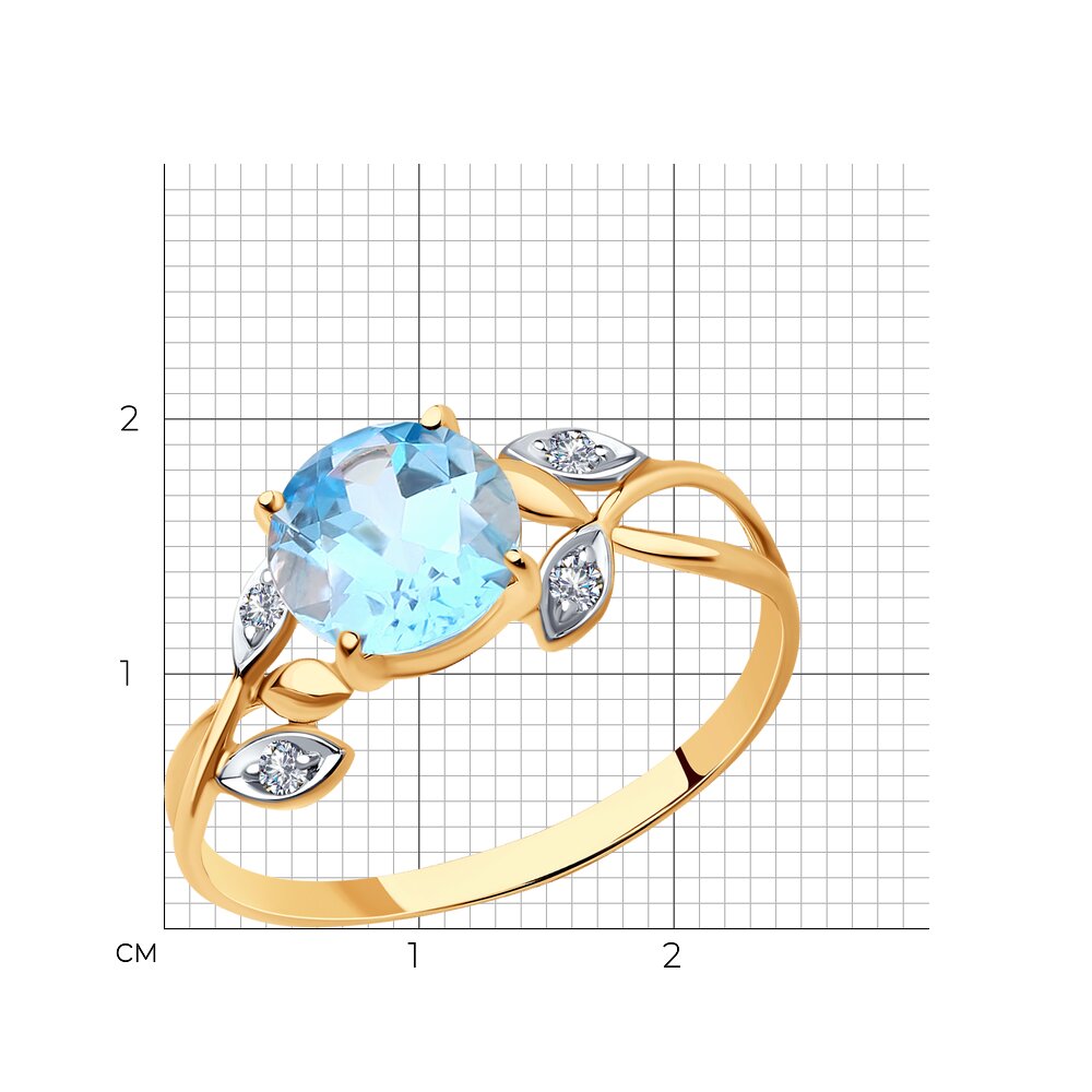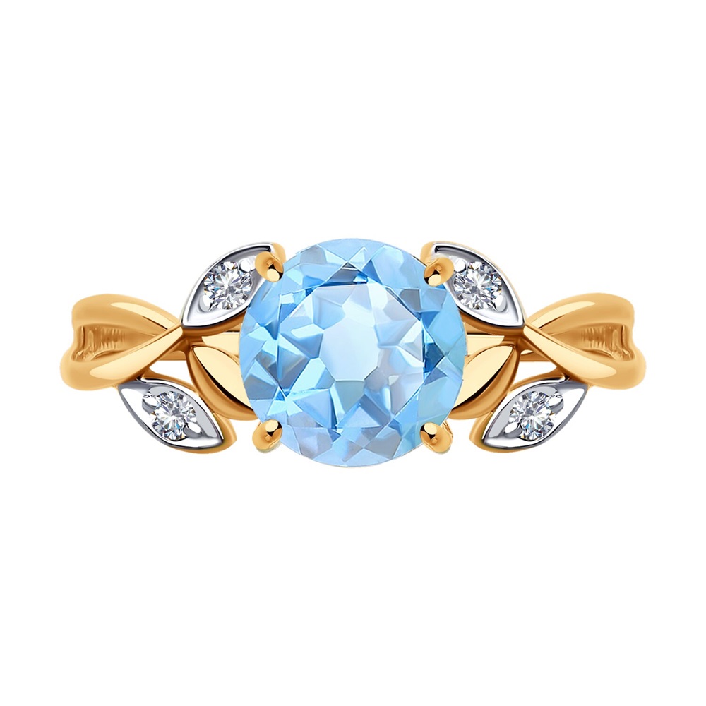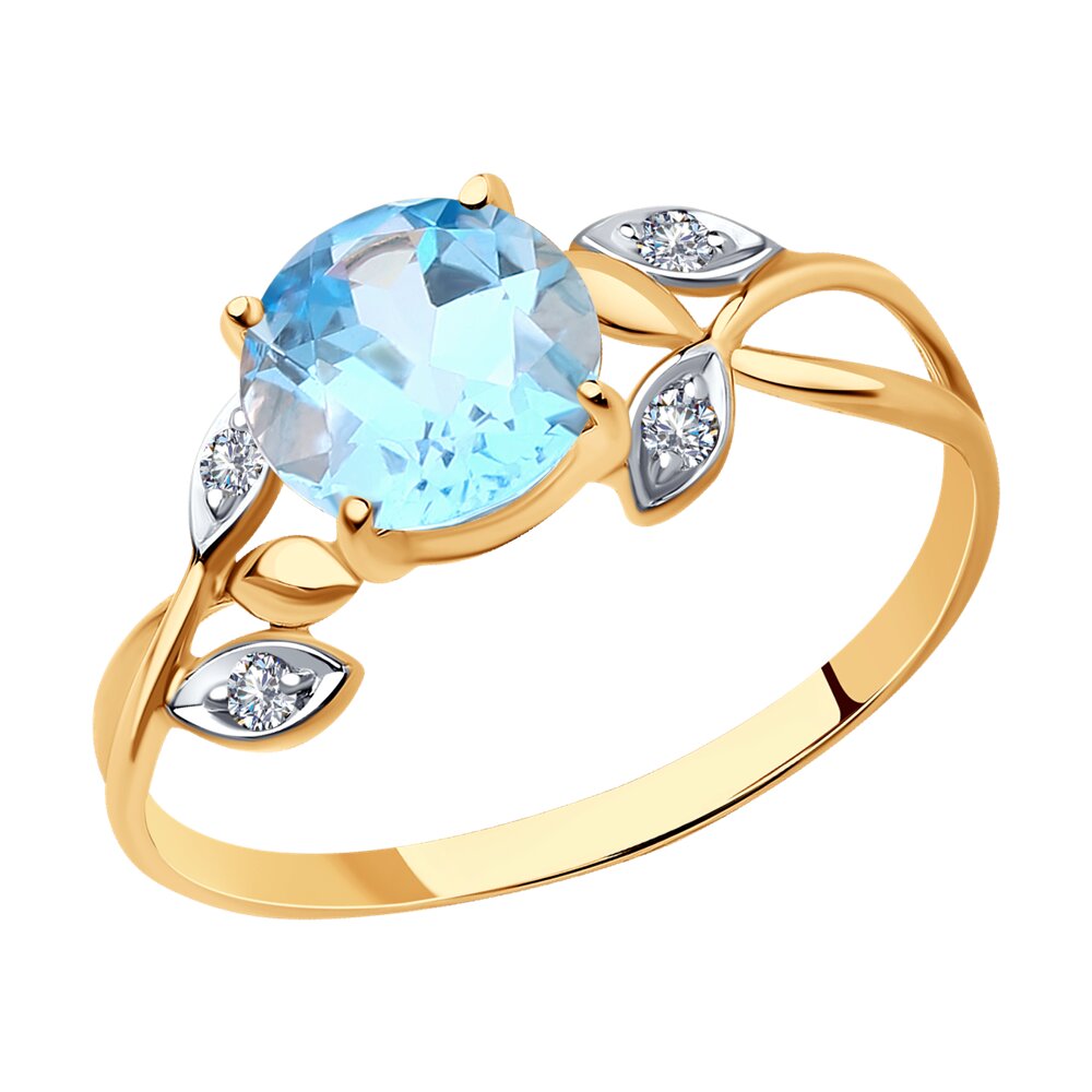 Очаровательное кольцо из красного золота 585 пробы с голубым топазом и фианитами покоряет своей красотой и изящным дизайном. Изумительное украшение с нежным чистым блеском чудесного топаза не оставит женщину равнодушной, и станет изысканной деталью утонченного образа. Приобретайте украшение в подарок для ваших любимых по выгодной цене в магазинах Мир Золота.