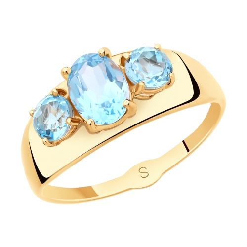 Элегантное кольцо из красного золота 585 пробы декорировано натуральными голубыми топазами. Благородное золото выгодно подчеркивает объем и удивительную красоту камней. Украшение с нежным блеском чудесных топазов станет прекрасным подарком и очаровательным акцентом женственного образа.. Приобретайте ювелирное украшение по выгодной цене в магазинах Мир Золота.
