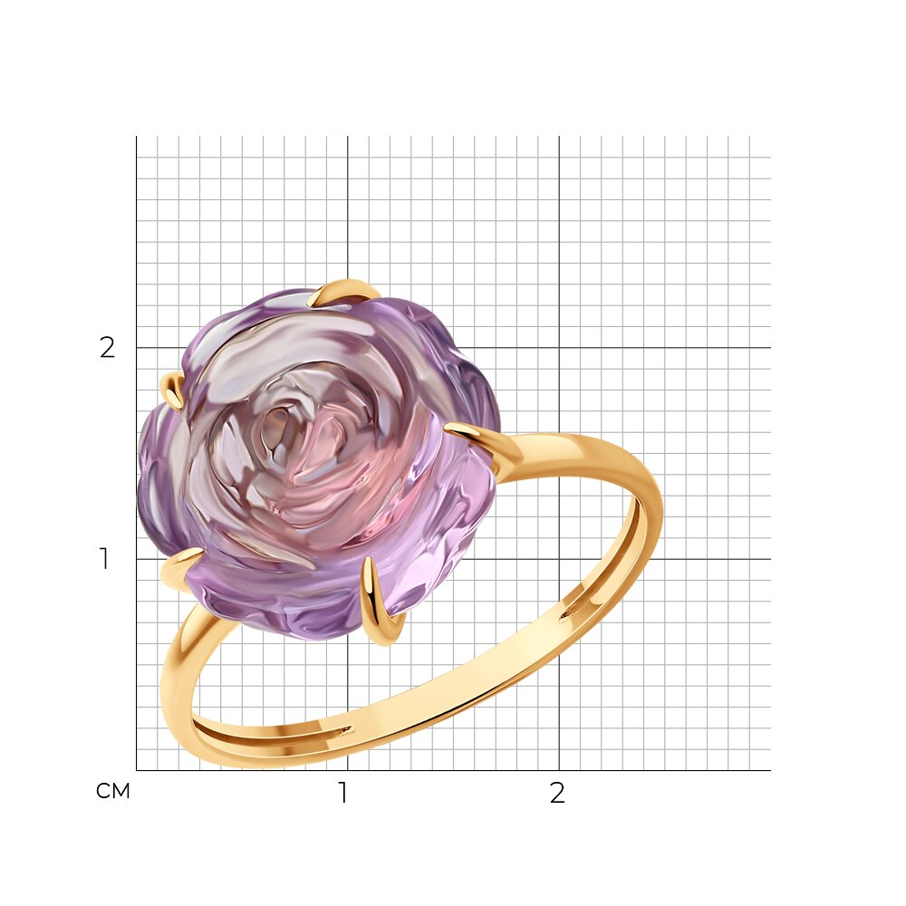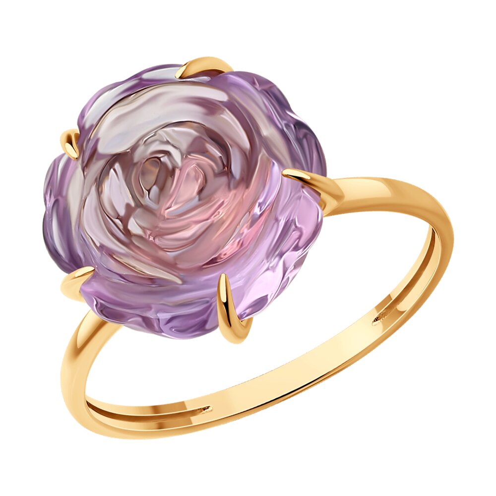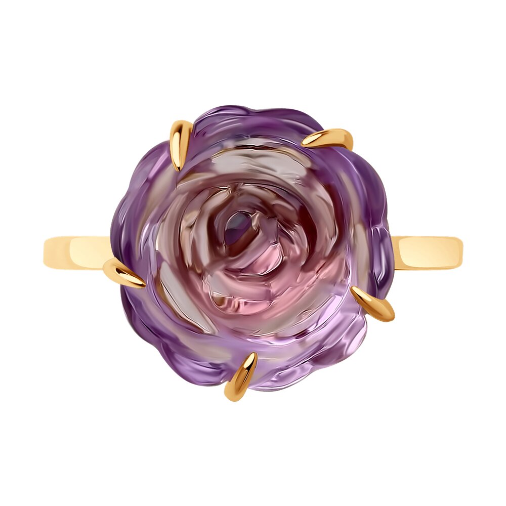 Кольцо оригинального дизайна с крупным аметистом в форме цветка выполнено из красного золота. Превосходный аметист светлого оттенка в обрамлении мягкого сияния драгоценного металла эффектно дополнит романтичные нежные образы, подчеркнув красоту и очарование владелицы. Приобретайте ювелирное украшение по выгодным ценам в магазинах Мир Золота.