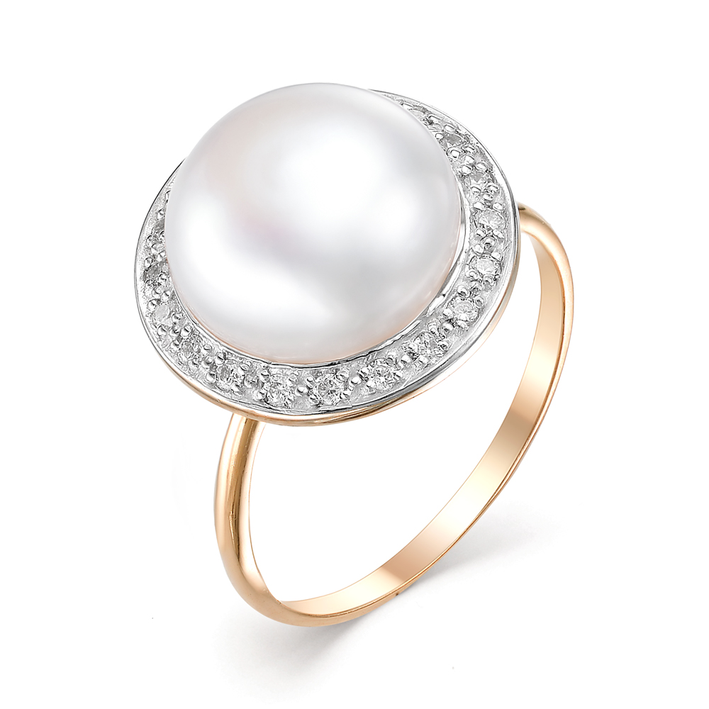 Кольцо из красного золота с жемчугом и фианитами