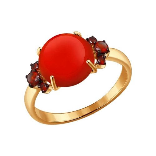 Яркое кольцо с насыщенно-алым кораллом и гранатами выполнено из красного золота 585 пробы. Необычное сочетание матового блеска коралла с глубоким сиянием гранатов винного оттенка привлечет заинтересованные взгляды. Выразительное украшение наполнит женский образ изысканным блеском и яркими красками. Приобретайте кольцо по выгодной цене в магазинах Мир Золота.