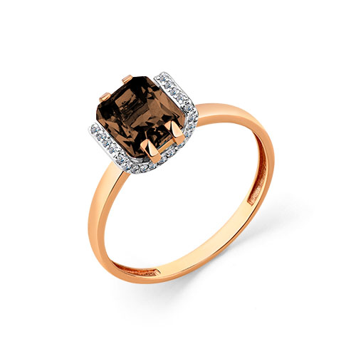 Привлекательное кольцо с превосходным раухтопазом и фианитами выполнено из красного золота 585 пробы. Эффектный раухтопаз, дополненный сиянием кристальных фианитов, смотрится особенно выигрышно и притягательно. Украшение привлекает внимание, и эффектно дополнит изысканный образ владелицы. Покупайте ювелирное украшение выгодно в магазинах Мир Золота.