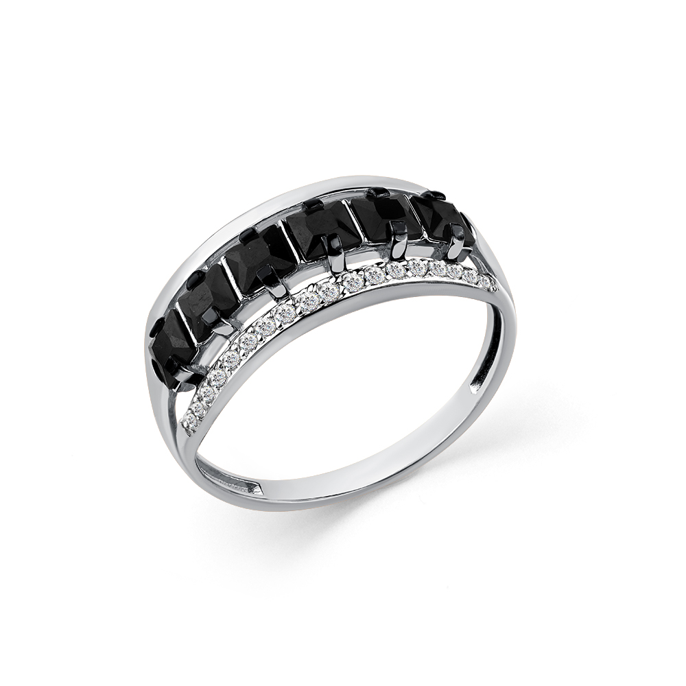 Эффектное кольцо с черной синтетической шпинелью выполнено из белого золота 585 пробы. Яркое украшение с дорожками квадратных и круглых камней в контрастном сочетании с благородным золотом смотрится стильно и современно и отлично впишется в любой выбранный образ. Приобретайте ювелирное украшение для себя или в подарок по выгодной цене в магазинах Мир Золота.