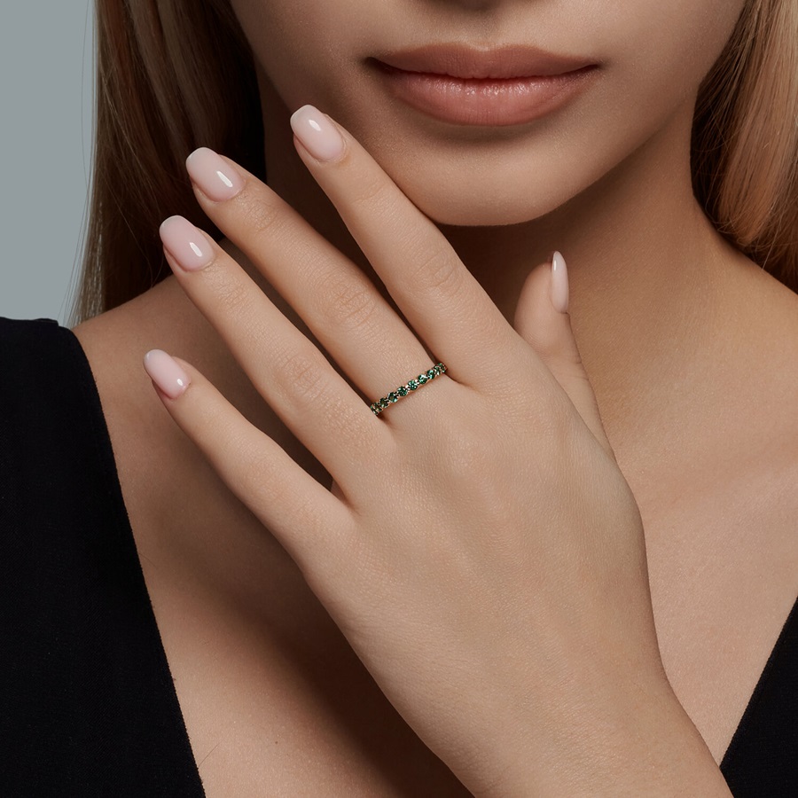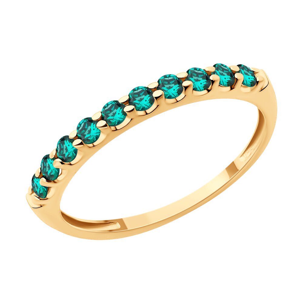 Классическое кольцо из красного золота 585 пробы с дорожкой гидротермальных изумрудов подчеркнет женственность и очарование владелицы. Утонченное украшение с изумительным сиянием камней комфортно в носке, и идеально дополнит как повседневный, так и вечерний наряд. Приобретайте ювелирное кольцо для себя или в подарок по выгодной цене в магазинах Мир Золота.