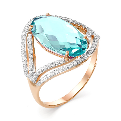 Декоративное кольцо из красного золота с голубым аквамарином фигурной огранки и прозрачными фианитами подчеркнет привлекательность, раскрывая женственность и чувственность владелицы. Сочетание нежной прозрачности аквамарина и кристального блеска фианитов создает неповторимый образ украшения. Приобретайте восхитительное кольцо по выгодным ценам в магазинах Мир Золота.