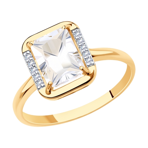 —Кольцо из красного золота с горным хрусталём и фианитами