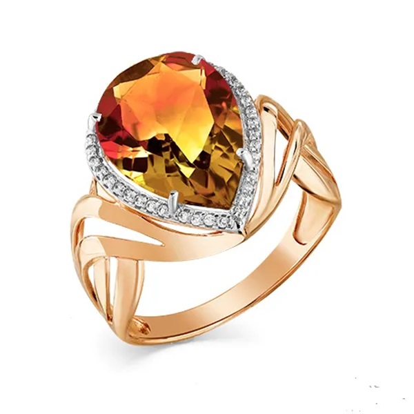 Эффектное кольцо с крупным камнем синтетического султанита в сияющем обрамлении кристальных фианитов выполнено из красного золота 585 пробы. Волшебный блеск завораживающего султанита привлекательной грушевидной формы огранки приковывает взгляд. Украшение смотрится ярко и женственно и станет великолепным акцентом притягательного женского образа. Покупайте кольцо выгодно в магазинах Мир Золота.