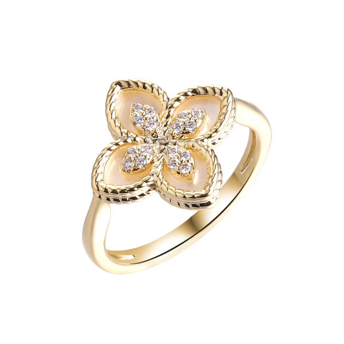 Кольцо из позолоченного серебра с пеламутром и фианитами