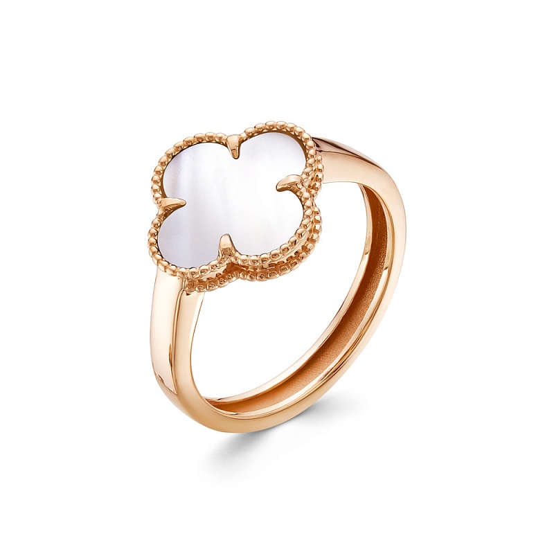Стильное кольцо «Клевер» выполнено из красного золота 585 пробы и декорировано привлекательной вставкой в виде клевера с белым перламутром. Нежный блеск перламутра, выигрышно подчеркнутый благородным сиянием золота, интересно дополнит очаровательный женственный образ. Приобретайте ювелирное украшение бренда BERGER в подарок по выгодной цене в магазинах Мир Золота.