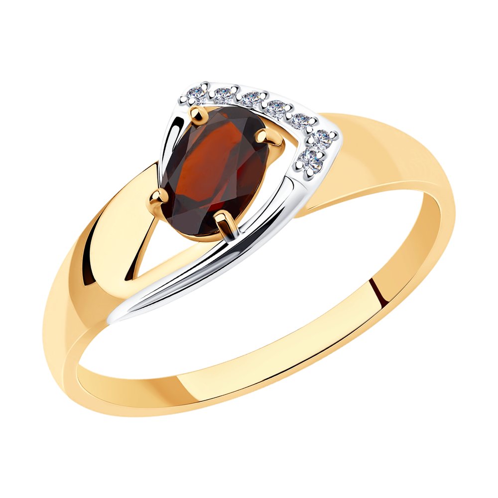 Кольцо из красного золота с гранатом и фианитами