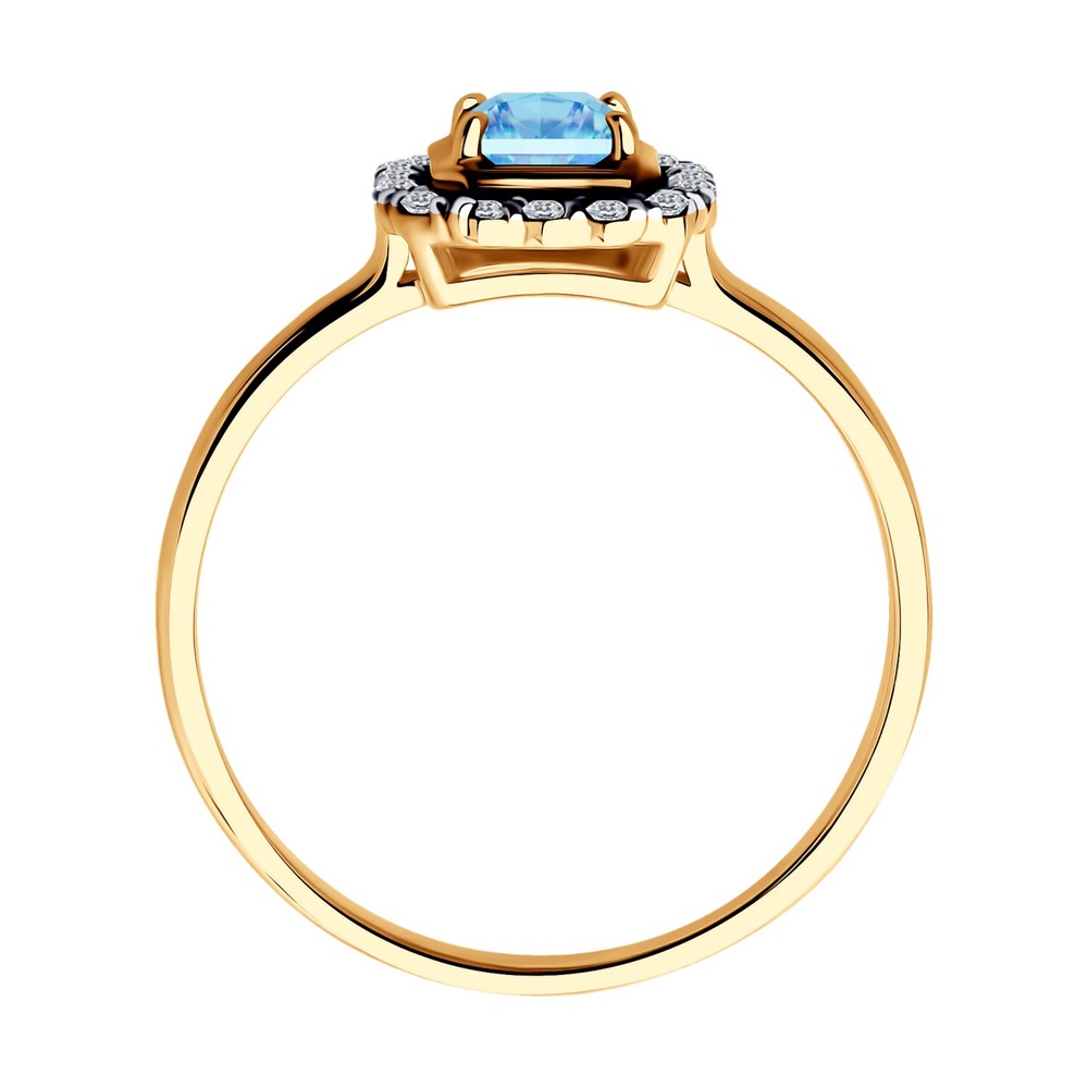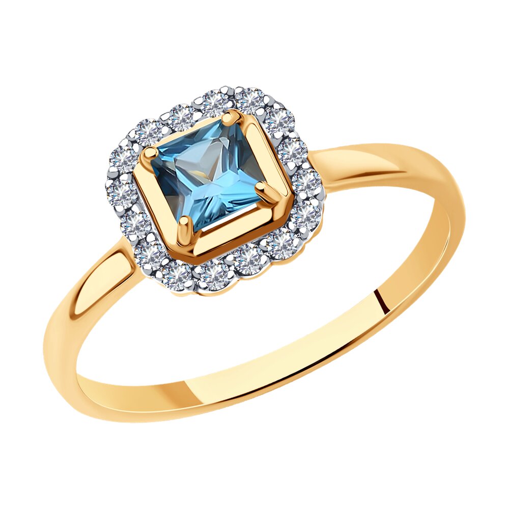 Элегантное кольцо из красного золота 585 пробы с выразительной вставкой с топазом Лондон в окружении сияющих фианитов подчеркнет женственность и чувственность владелицы. Яркое сочетание насыщенного оттенка топаза и кристального блеска фианитов смотрится нарядно и привлекательно, и будет достойным дополнением классического или современного образа. Приобретайте кольцо по выгодным ценам в магазинах Мир Золота.
