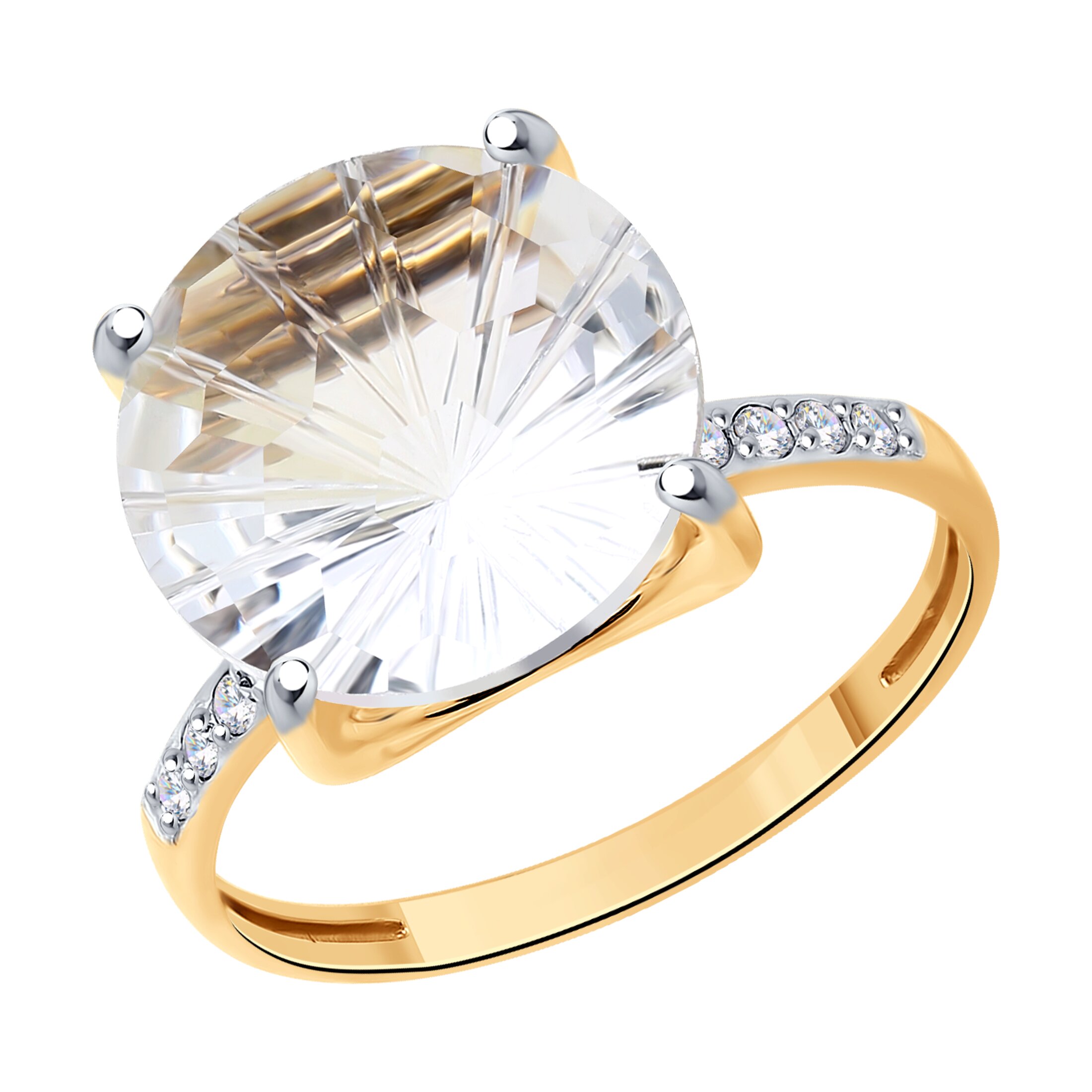 —Кольцо из красного золота с горным хрусталём и фианитами