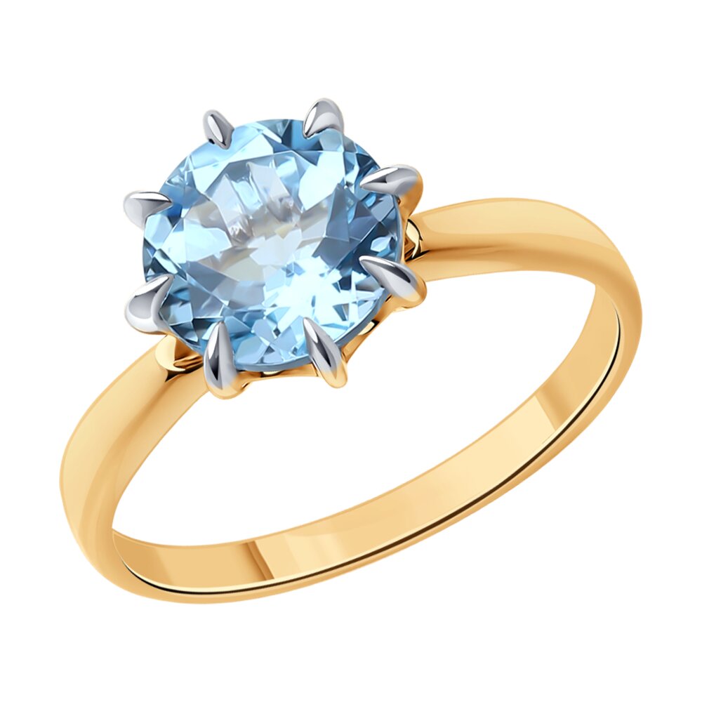 Кольцо из красного золота 585 пробы с великолепным голубым топазом смотрится стильно и современно, и не останется незамеченным. Эффектная закрепка выгодно акцентирует крупный топаз и подчеркивает его неповторимую природную красоту и изумительное сияние. Приобретайте ювелирное кольцо с топазом для себя или в подарок по выгодным ценам в магазинах Мир Золота.