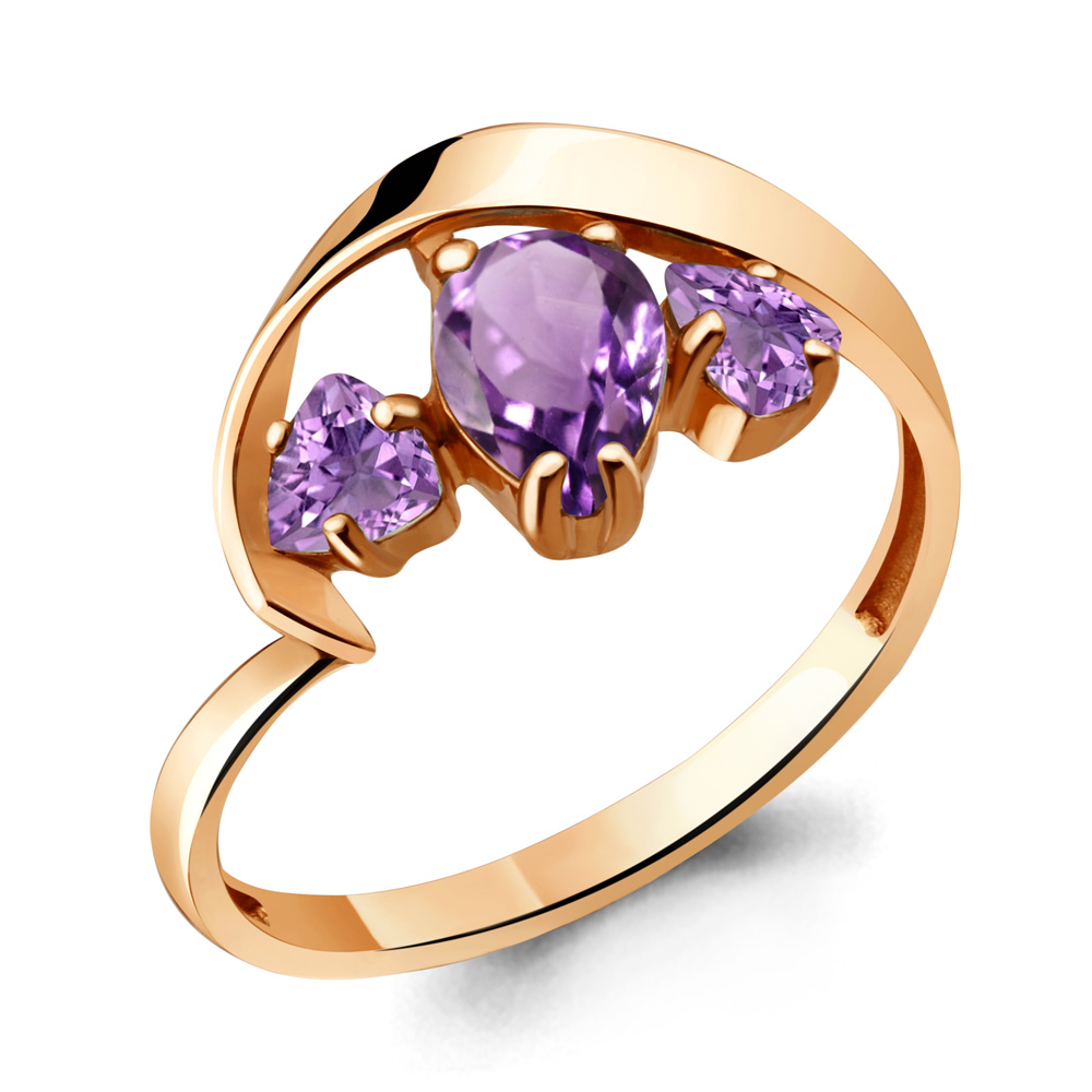 Кольцо из красного золота с аметистами