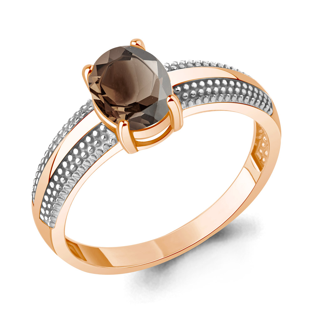 Кольцо современного ювелирного дизайна из красного золота 585 пробы с дымчатым кварцем отлично впишется в повседневный стиль. Украшение с загадочным сиянием кварца кофейного оттенка станет выразительным акцентом притягательного женского образа. Приобретайте ювелирное украшение по выгодной цене в магазинах Мир Золота.