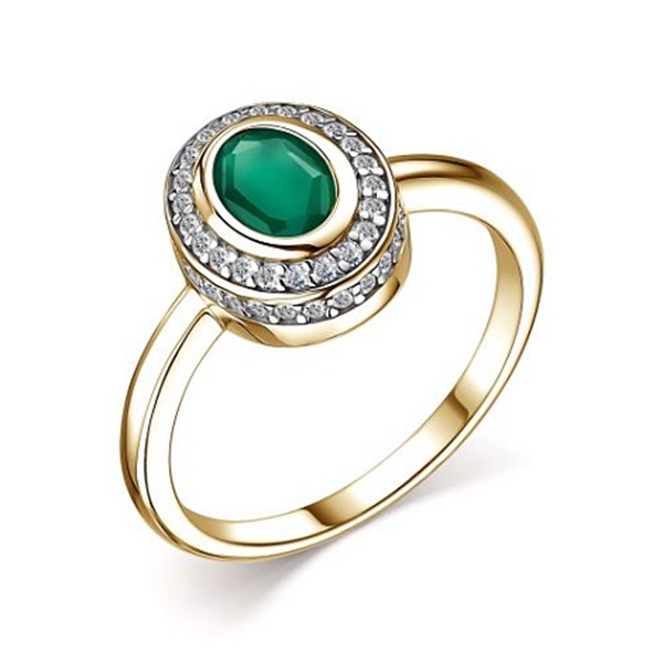 Кольцо из золочёного серебра 925 пробы, декорированное зеленым агатом в обрамлении кристальных фианитов, добавит в образ владелицы нотку изысканности и элегантности. Ювелирная классика в современном исполнении подчеркнет женственность и прекрасный вкус владелицы, и отлично впишется в вечерние образы. Приобретайте украшение по выгодной цене в магазинах Мир Золота.