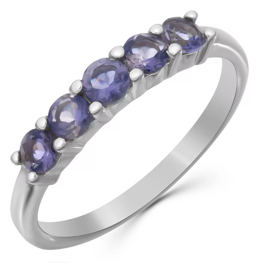 Утонченное кольцо из родированного серебра 925 пробы с дорожкой прекрасных фиалковых иолитов изящно и привлекательно смотрится на руке. Классический элегантный дизайн с притягательным сиянием ювелирных камней позволит создать завершенный образ, уместный в любой ситуации. Приобретайте ювелирное украшение для себя или в подарок по выгодным ценам в магазинах Мир Золота.