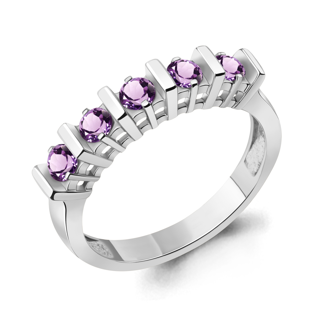 Кольцо из родированного серебра 925 пробы с дорожкой полудрагоценных аметистов очаровывает своей красотой и изысканным блеском. Элегантное украшение с нежным сиянием природных камней привлекательно смотрится на руке, и идеально дополнит любой женственный образ. Приобретайте ювелирное кольцо для себя или в подарок по выгодным ценам в магазинах Мир Золота.