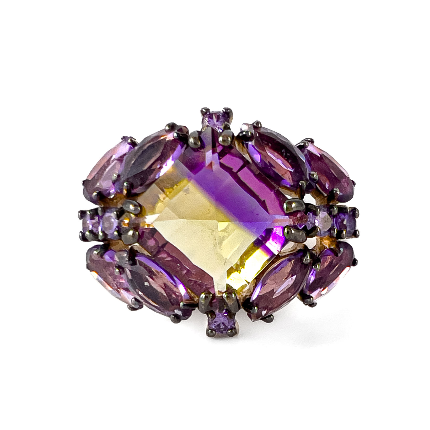 —Кольцо из золота с аметистом, аметрином и фианитами
