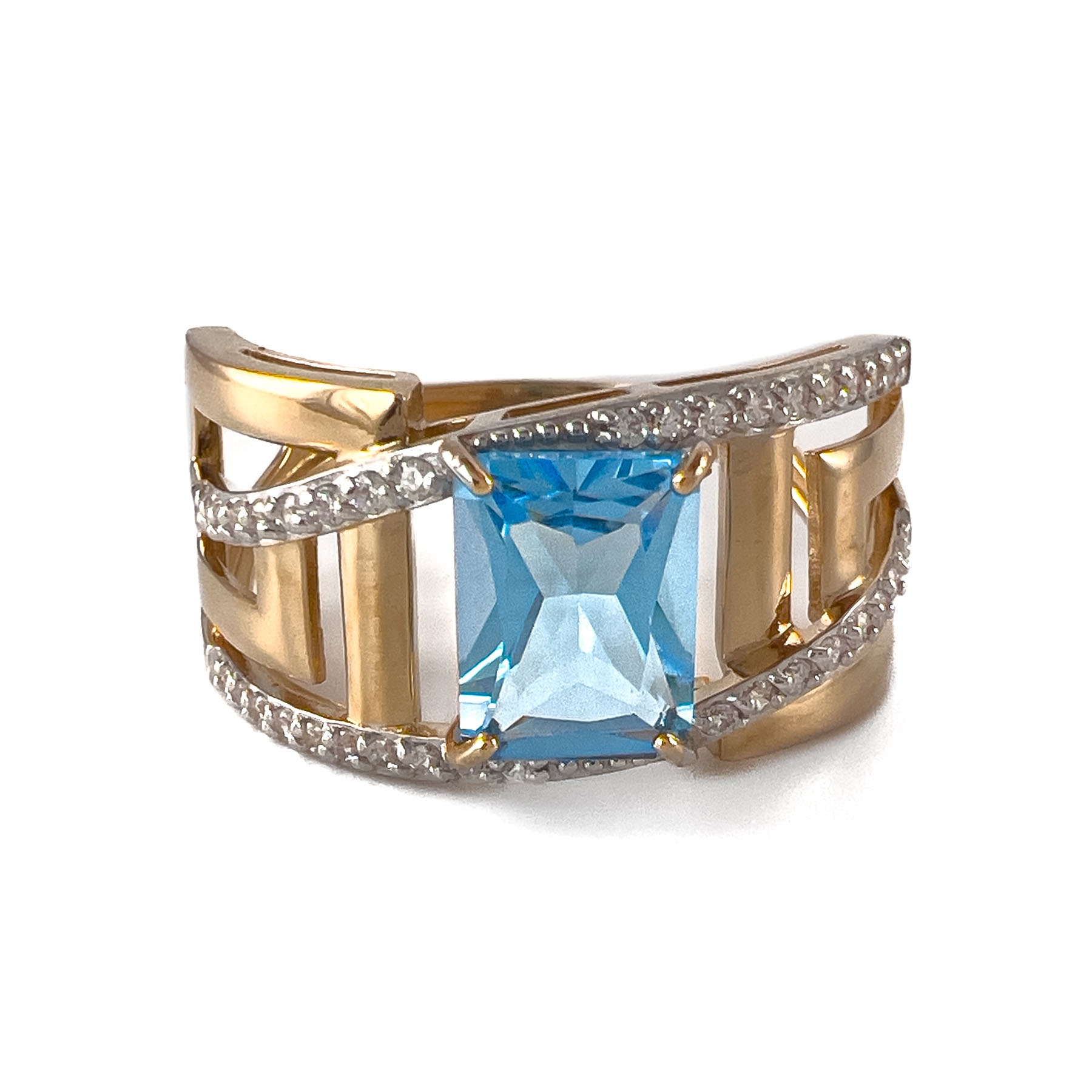 —Кольцо из красного золота с топазом и фианитами