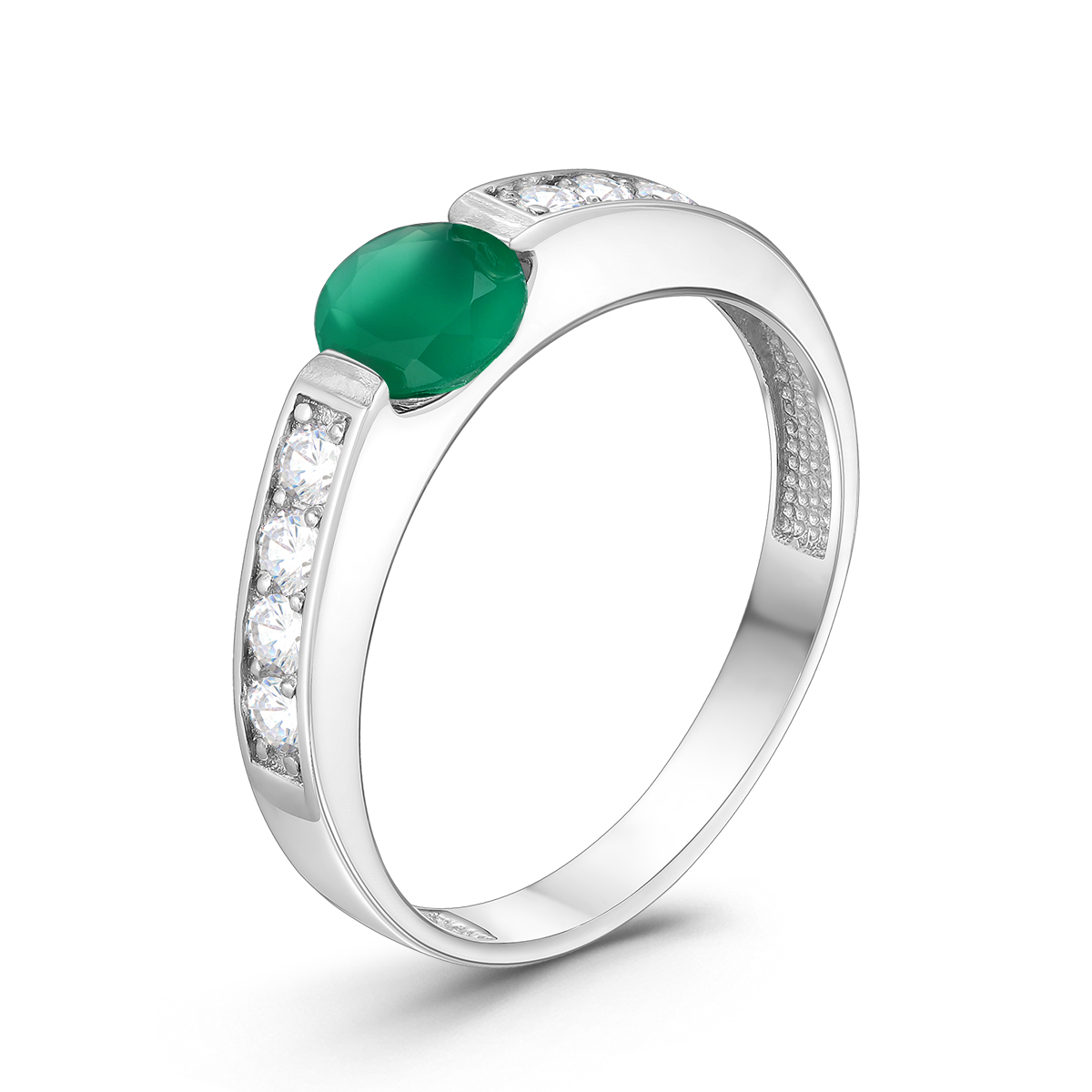 Серебряное кольцо классического стиля с зеленым агатом и фианитами добавит яркий акцент в выбранный образ. Центральный природный агат выгодно подчеркнут кристальным блеском дорожек из прозрачных фианитов, Замечательное украшение станет прекрасным дополнением повседневного классического образа. Покупайте серебряное кольцо по выгодным ценам в магазинах Мир Золота.