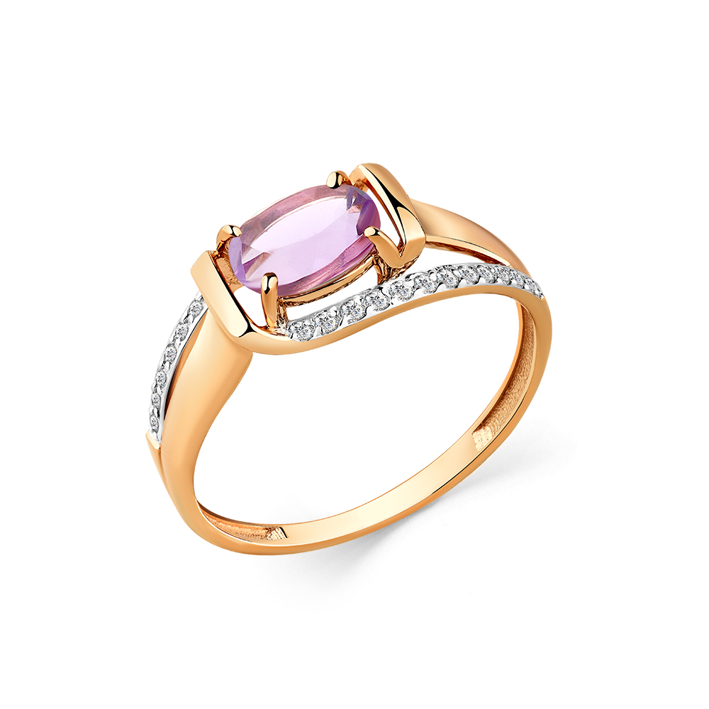 Кольцо из золота с аметистом и фианитами