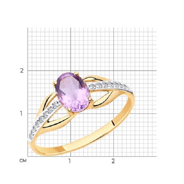 Кольцо из красного золота 585 пробы с аметистом и прозрачными фианитами дополнит женский образ благородным блеском металла и ярким сиянием камней. Загадочный фиолетовый аметист выгодно подчеркнут искристыми дорожками фианитов, отражающими его удивительный блеск. Приобретайте ювелирное украшение по выгодной цене в магазинах Мир Золота.